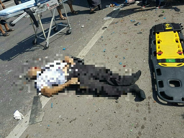 โดยที่เกิดเหตุพบผู้เสียชีวิต 2 ราย คือ ด.ต. ณัฐกฤษ รังษีบุตร อายุ 38 ปี ตำแหน่ง ผบ.หมู่ ส.ทล.1 กก.2 บก.ทล. (ตำรวจทางหลวง 1 กองกำกับการ 2 กองบังคับการตำรวจทางหลวง) อยู่บริเวณหน้ารถบรรทุก 10 ล้อ ส่วนผู้เสียชีวิตอีกรายเป็นผู้โดยสารรถสองแถว สายสมุทรสาคร-บางโทรัด ทราบชื่อคือ นายทวี คุณาบุตร อายุ 80 ปี