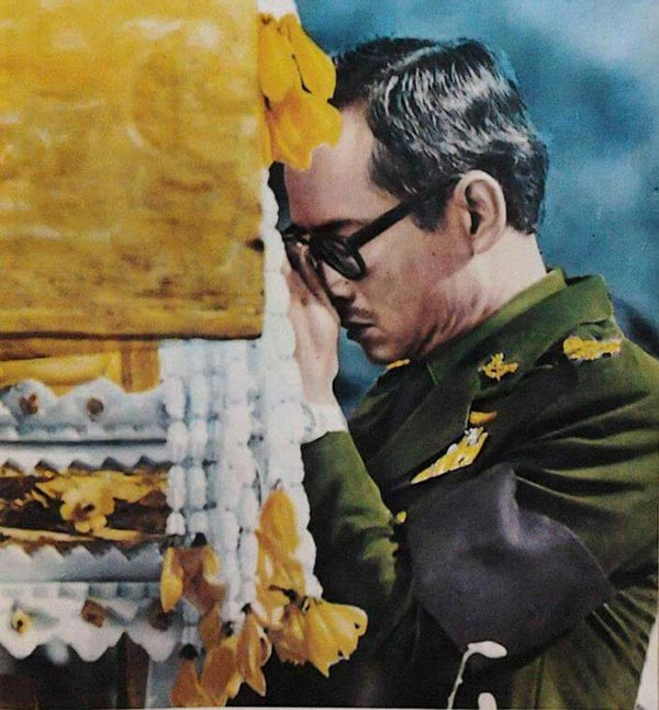เปิดภาพแห่งความประทับใจเมื่อครั้ง พระบาทสมเด็จพระปรมินทรมหาภูมิพลอดุลยเดชทรงไหว้หีบทองบรรจุศพ "หลวงปู่ฝั้น อาจาโร" พระอาจารย์ผู้สอนกรรมฐานแด่พระองค์