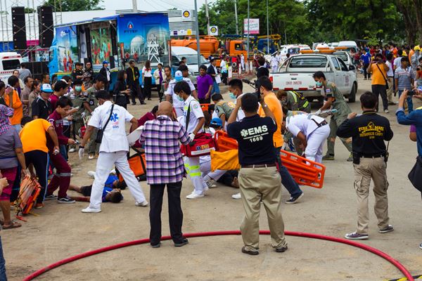 3. โทรศัพท์แจ้งหน่วยงานที่เกี่ยวข้อง อาทิ ตำรวจ หน่วยแพทย์ฉุกเฉิน พร้อมให้ข้อมูลจุดเกิดเหตุ จำนวนและอาการของผู้บาดเจ็บ เพื่อเจ้าหน้าที่ จะได้วางแผนให้การช่วยเหลือผู้ประสบเหตุได้อย่างถูกต้อง