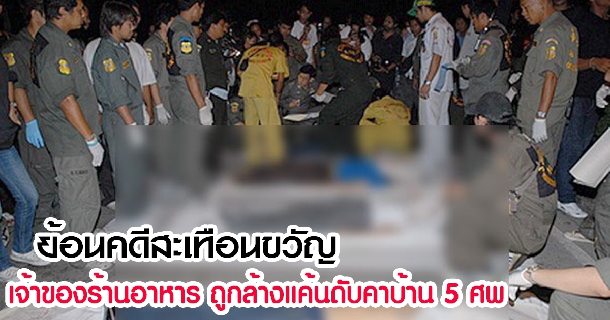 ที่เกิดเหตุเป็นบ้านทรงไทยมีรั้วรอบขอบชิด หลังบ้านปลูกต้นไม้ไว้อีกกว่า 10 ไร่ ซึ่งก่อนเกิดเหตุทั้ง 5 คนไปดื่มกินกันที่ร้านอาหารริมคลองชลในตัวเมือง ก่อนจะกลับมากินต่อที่บ้านตอนเที่ยงคืน จากนั้นพยานเล่าว่า เวลาตี 2 ได้ยินเสียงปืนหลายนัด แต่ก็ไม่ได้เอะใจเพราะบ้านนี้ชอบยิงปืนเป็นประจำ อย่างไรก็ดี ตอนเช้ากลับพบว่าทั้ง 5 คนได้ถูกยิงเสียชีวิตทั้งหมด