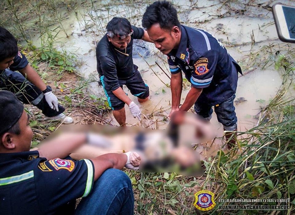 พบศพสาวไม่ทราบชื่อ หน้าตาดี ถูกฆ่าถ่วงน้ำใช้หินผูกกับศพ แถมพบร่องรอยถูกยิง-ถูกทำร้ายทารุณ ในพื้นที่ อ.บ้านโป่ง จ.ราชบุรี