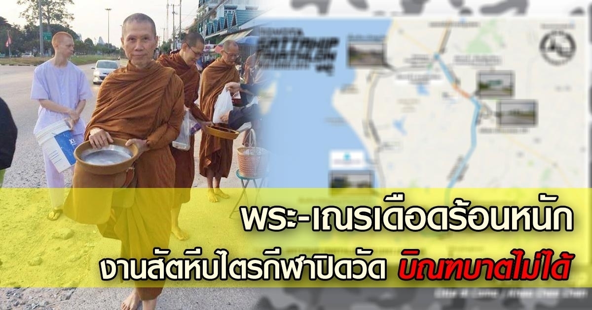 พระสงฆ์และลูกศิษย์วัดญาณสังวราราม ขอความเห็นใจ กิจกรรมสัตหีบไตรกีฬา 2559 ให้เปลี่ยนเส้นทาง หลังปิดถนนแข่งตั้งแต่ 04.00-12.00 น. ส่งผลให้พระกว่า 100 รูป ไม่สามารถบิณฑบาตได้