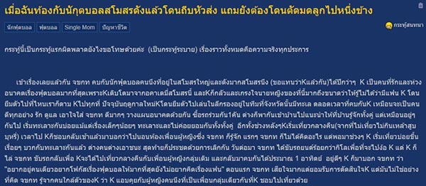 สาวตั้งกระทู้แฉ ตั้งท้องกับนักฟุตบอลสโมสรดัง ปัดความรับผิดชอบ ถีบหัวส่ง แล้วยังไปมีความสุขกับแฟนใหม่อย่างหน้าตาเฉย แถมโพสต์ด่า "ทำตัวเองทั้งนั้น แล้วโทษแต่คนอื่น"