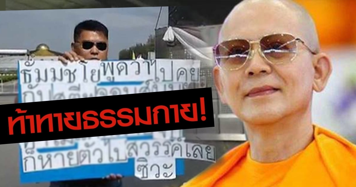 วันที่ 14 ธันวาคม 2559 เวลาประมาณ 11.40 น. มีรายงานว่า นายสุรวัชร สังขฤกษ์ อายุ 50 ปี เจ้าหน้าที่ รปภ. แห่งหนึ่งย่านบางนา ได้ถือป้ายฟิวเจอร์บอร์ดที่มีข้อความติดไว้ว่า "ธัมมชโยพูดว่าไปคุยกับ สตีฟ จ็อบส์ บนสวรรค์มาแล้วกลัวทำไมแค่หมายจับ ก็หายตัวไปสวรรค์เลยสิวะ" บริเวณประตู 7 ของวัดพระธรรมกาย อ.คลองหลวง จ.ปทุมธานี