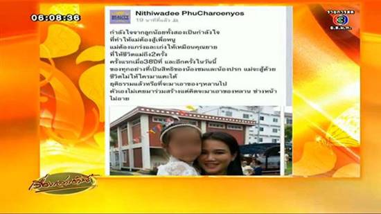 "กระทั่งมีปัญหาครั้งล่าสุดที่มีการร้องขอความช่วยเหลือจากนางปวีณา แล้วเอ็กซ์ต้องเข้าเรือนจำ พอออกมาแล้วคิดว่าเอ็กซ์ จะดีขึ้นแต่ก็ยังไม่ดี ยังทำร้ายทุบตียิ่งร้ายขึ้นทุกวันไม่ใช่ว่าทำน้อยลง ก่อนมาแจ้ง รมว.พม. ก็ทำร้ายจนหมอนิ่มแท้ง เขาทำได้อย่างไรทั้งที่รู้ว่ามีลูก ถามว่าทุกคนจะทำใจได้หรือไม่ ส่วนตัวแม่ทำใจไม่ได้ เมื่อเป็นแบบนี้แล้วจะรอให้ลูกตายก่อนหรือ แม่ทนไม่ได้ที่จะเป็นแบบนั้น"