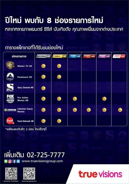 สมาชิกทรูวิชั่นส์ สามารถสอบถามรายละเอียดเพิ่มเติมได้ที่ โทร. 02-725-2727 หรือ www.truevisionsgroup.com