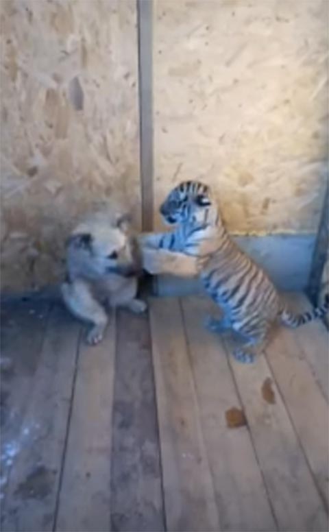 เว็บไซต์เดลี่เมล รายงานข่าว ลูกเสือโคร่งสุดเชื่อง เป็นมิตรกับสัตว์ชนิดอื่นในสวนสัตว์ ไม่ว่าจะเป็น ลูกสุนัข หรือ เฟอร์เร็ต โดยเล่นหยอกล้อกันด้วยท่าทีสนุกสนาน