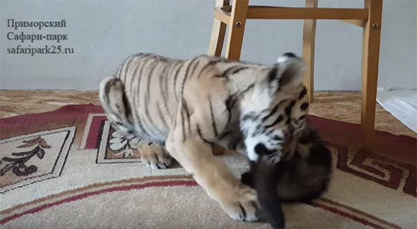 เชอร์คาน ลูกเสือโคร่งสุดน่ารักและเป็นมิตรจากรัสเซีย หลังหยอกล้อเล่นกับ ลูกสุนัข และ เฟอร์เร็ต อย่างสนุกสนาน จนกลายเป็นที่หลงรักในโลกออนไลน์ วันที่ 28 ธันวาคม 2559