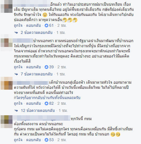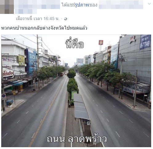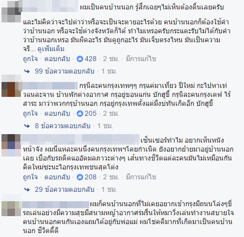 เมื่อวันที่ 1 มกราคม 2559 ในโลกโซเชียลเน็ตเวิร์กต่างมีการวิจารณ์ผู้ใช้เฟซบุ๊กรายหนึ่ง ซึ่งได้แชร์ภาพถนนลาดพร้าวโล่งในช่วงเทศกาลปีใหม่ พร้อมกับเขียนข้อความว่า พวกคนบ้านนอกกลับต่างจังหวัดไปหมดแล้ว