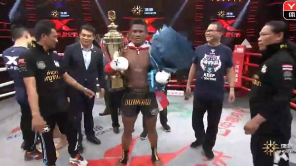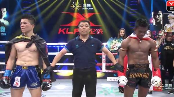 พบกับ เทียนซิน นักชกชาวจีน ซึ่งทั้งคู่สู้กันในกติกามวยไทย กำหนด 3 ยก