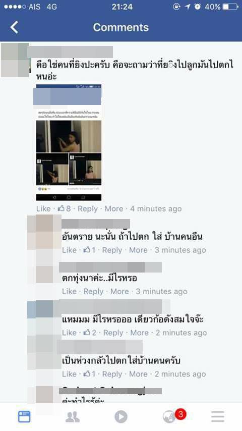 เฟซบุ๊กเพจ ควาย+Social V.3 เผยเหตุการณ์จากผู้ใช้เฟซบุ๊กรายหนึ่ง ซึ่งเป็นหญิงสาวหน้าตาดี ยิงปืนออกนอกหน้าต่างห้องพักในช่วงปีใหม่ พร้อมแคปชั่นว่า "หนวกหูซักนัดไหม HNY"