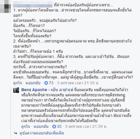 ขณะเดียวกัน ได้มีผู้ใช้เฟซบุ๊กรายหนึ่งมาอธิบายเพิ่มในส่วนที่ต้องคุ้มกันผู้ต้องหาว่า ถ้าหากผู้ต้องหาถูกทำร้ายจนตาย ตำรวจจะมีความผิด ถึงขั้นไล่ออกจากราชการนั่นเอง