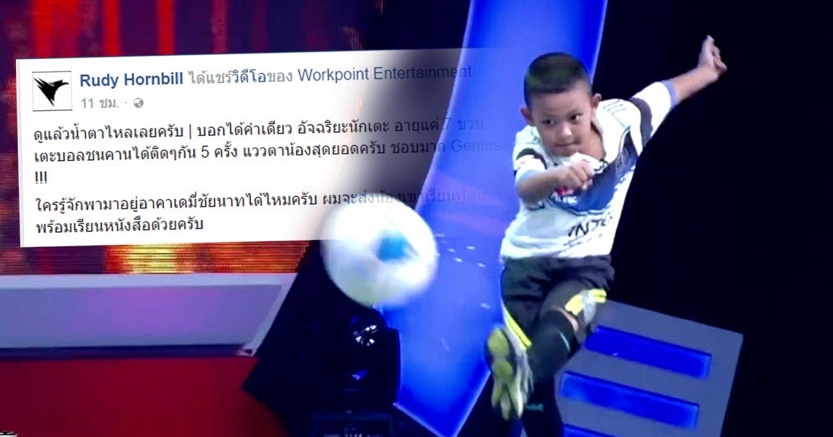 จากกรณีโลกออนไลน์ชื่นชมความสามารถ น้องพี เด็กชาวมอญ วัย 7 ขวบ ออกรายการโชว์ทักษะเตะบอลชนคาน 3 ครั้งติดต่อกัน เพื่อขอลูกฟุตบอลใบแรกของตัวเอง ซึ่งหลายฝ่ายชื่นชมในฝีเท้าและฝากฝังให้วงการฟุตบอลไทยช่วยสนับสนุนเด็กน้อยรายนี้ (อ่านข่าว : แชร์เพียบ น้องพี นักเตะไร้บอล กับความพยายามแรงกล้า ขอลูกฟุตบอลใบแรกในชีวิต)