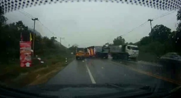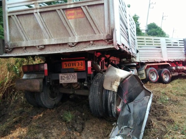 ทั้งนี้ห่างออกมาอีกจุดหนึ่งประมาณ 10 เมตร พบรถพ่วง 18 ล้อ ยี่ห้ออีซูซุ สีขาว หมายเลขทะเบียน 82-9769 กาญจนบรี หางพ่วง หมายเลขทะเบียน 82-9770 กาญจนบุรี ตกอยู่ข้างทาง โดยมี นายธรรมรัตน์ โสภา อายุ 34 ปี ผู้ขับยืนรออยู่ในที่เกิดเหตุ