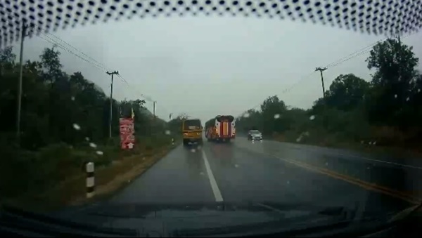เปิดวินาทีระทึก คลิปรถบัสรับ-ส่งนักเรียน เร่งเครื่องแซงไม่พ้น ทำให้รถพ่วง 18 ล้อที่วิ่งสวนมาจากอีกเลนท้ายพ่วงสะบัดชนรถบัสตกข้างทาง คนขับรถบัสเสียชีวิต-นักเรียนบาดเจ็บระนาว
