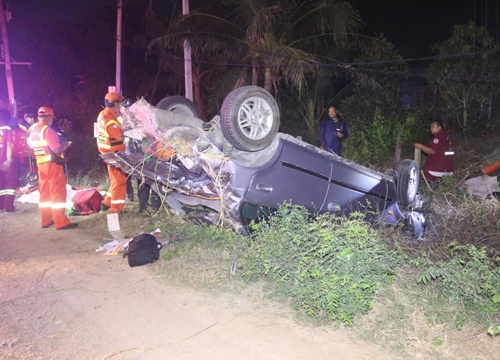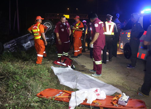 ที่เกิดเหตุพบรถเก๋งเสียหลักชนกำแพงรั้วทางด่วนเสียหายจำนวน 10 อัน พลิกหงายท้องล้อชี้ฟ้าอยู่นอกรั้วและพบผู้ได้รับบาดเจ็บเป็นชาย 1 ราย เป็นหญิง 1 ราย ทราบชื่อคือ นายสรวรรธ ศิริเสนา และนางสาวอรทัย เทพมณี ในที่เกิดเหตุพบผู้เสียชีวิตเป็นหญิง 2 ราย กระเด็นออกมานอกตัวรถ ห่างออกไปประมาณ 20 เมตรพบรถตู้จอดบริเวณริมทางด่วน ในสภาพยางด้านหน้าซ้ายแตกและหน้ารถได้รับความเสียหาย