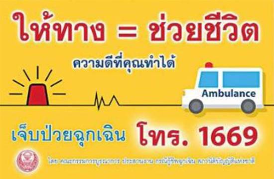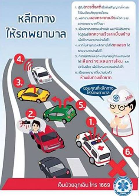 6. เมื่อรถพยาบาลฉุกเฉินวิ่งผ่านไปแล้วห้ามขับตามเด็ดขาด