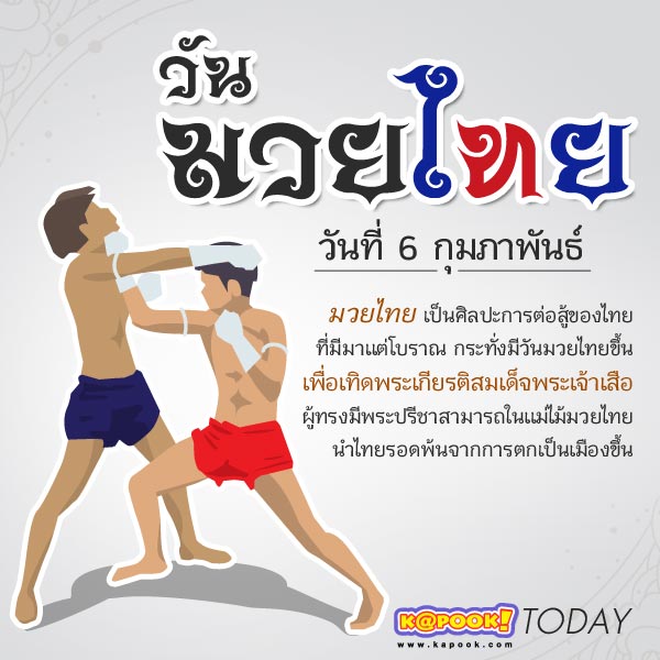 หลายหน่วยงานจัดกิจกรรม วันมวยไทย ในวันที่ 6 กุมภาพันธ์ นี้เพื่อรำลึกถึง สมเด็จพระสรรเพชญ์ที่ 8 (สมเด็จพระเจ้าเสือ) ด้วยพระองค์ทรงปรีชาด้านมวยไทยเป็นที่ประจักษ์และมีหลักฐานทางประวัติศาสตร์ชัดเจน