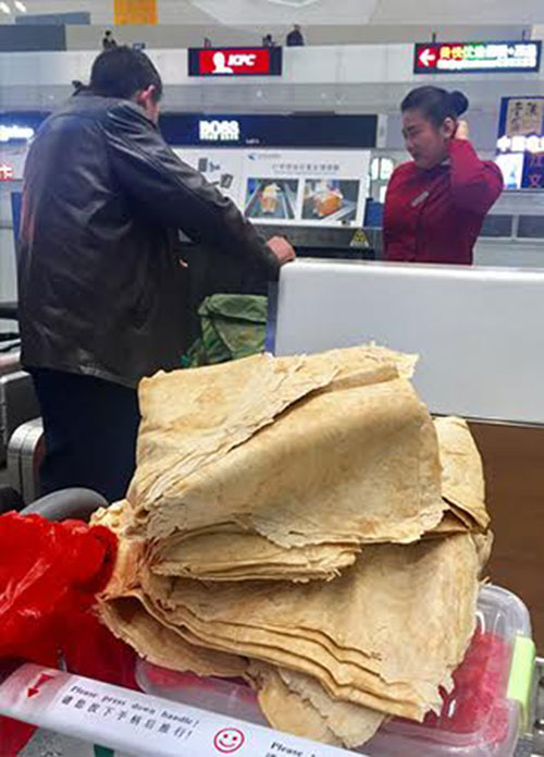ลุงชาวจีนหอบแพนเค้กฝีมือแม่กองโต ใส่กระเป๋าขึ้นเครื่องบิน หวังนำกลับบ้านไปด้วย แต่เมื่อพบว่าน้ำหนักเกิน เขาก็ไม่ลังเลที่จะแยกมันออกมา แล้วหิ้วเดินขึ้นเครื่องแทน