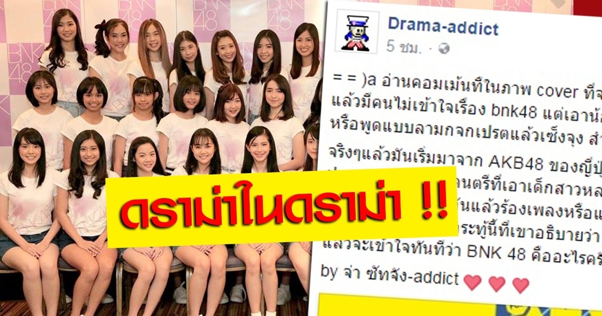 ดราม่า BNK48 มาอีก จ่าพิชิต Drama-addict ออกตัวเป็นแฟนคลับ ซัทจัง BNK48 เอารูปวงขึ้นหน้าปกเพจ แต่เจอคอมเมนต์เสื่อม ทั้งโยง AV-อาบอบนวด !!