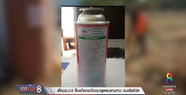 วันที่ 19 กุมภาพันธ์ 2560 ตำรวจภูธรขามสะแกแสง จ.นครราชสีมา เข้าตรวจสอบศพ เด็กชายอายุ 12 ปี นักเรียนชั้น ป.6 โรงเรียนวัดแห่งหนึ่งใน ต.โนนเมือง เสียชีวิตสภาพนอนหงาย มีกระป๋องแก๊ส และถุงพลาสติกแบบหูหิ้วตกอยู่ข้างศีรษะ นอกจากนี้ยังได้รับแจ้งว่าพบเด็กเพื่อนชั้นเดียวกันอีกคนสูดดมด้วยแต่ถูกพาส่งโรงพยาบาลทันอาการปลอดภัย
