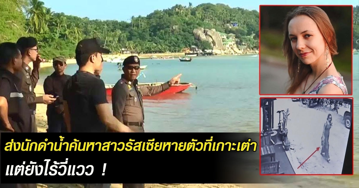 เจ้าหน้าที่ยังหาตัวนักท่องเที่ยวสาวชาวรัสเซียหายตัวที่เกาะเต่า ระดมหาในทะเลใช้นักดำน้ำมืออาชีพ พร้อมเดินไล่สอบถามเบาะแส แต่ยังไร้วี่แวว