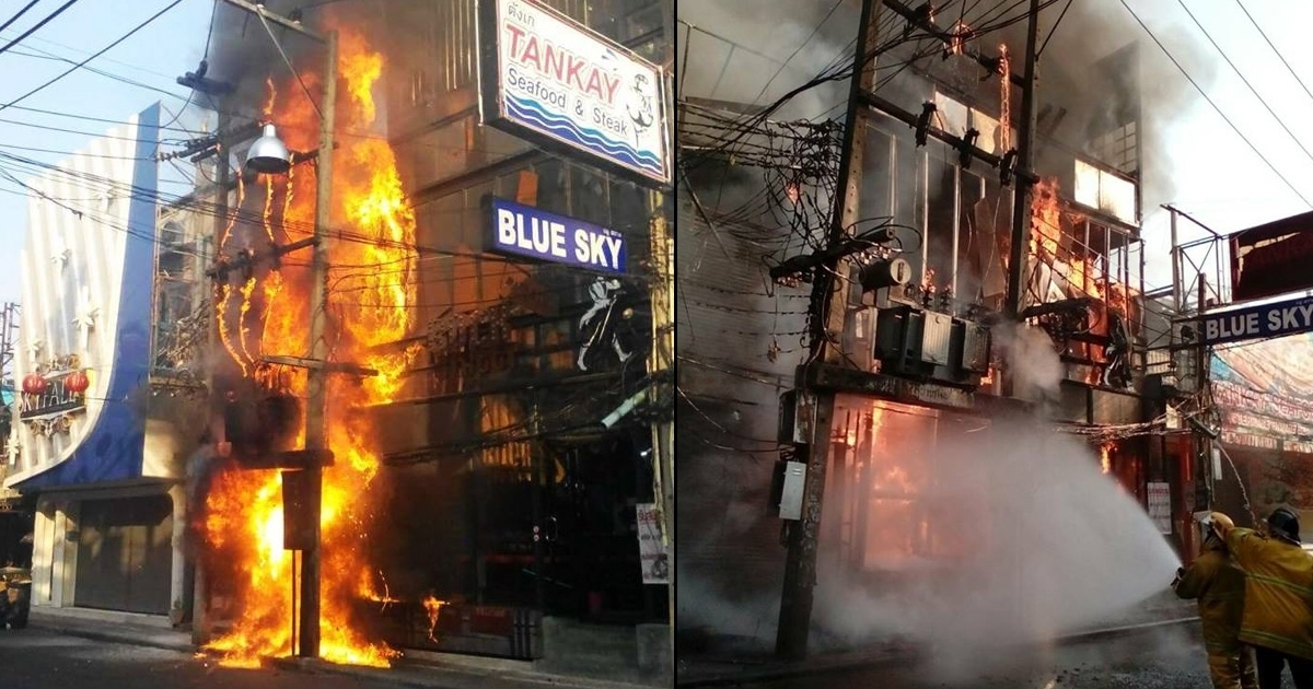 วันที่ 15 มีนาคม 2560 มีรายงานเหตุไฟไหม้ร้าน "ร็อคสตรีทบายบลูสกายผับ" เลขที่ 88/4 บนถนนวอล์คกิ้งสตรีท พัทยาใต้ อ.บางละมุง จ.ชลบุรี พบว่า ต้นเพลิงเกิดจากหม้อแปลงไฟฟ้าบริเวณหน้าร้านระเบิด แล้วลุกลามเข้าไปในร้านอย่างรวดเร็ว เจ้าหน้าที่ดับเพลิงจึงระดมฉีดน้ำทั้งด้านล่างและบนรถกระเช้า เพื่อสกัดไฟที่กำลังโหมลุกไหม้ และยังลุกลามเข้าไปไหม้ร้านใบเฟิร์น ซึ่งเป็นร้านรับแลกเงินตราต่างประเทศสูง 2 ชั้น 1 คูหา ที่อยู่ติดกัน โดยใช้เวลาประมาณ 1 ชั่วโมงจึงสามารถควบคุมเพลิงไว้ได้