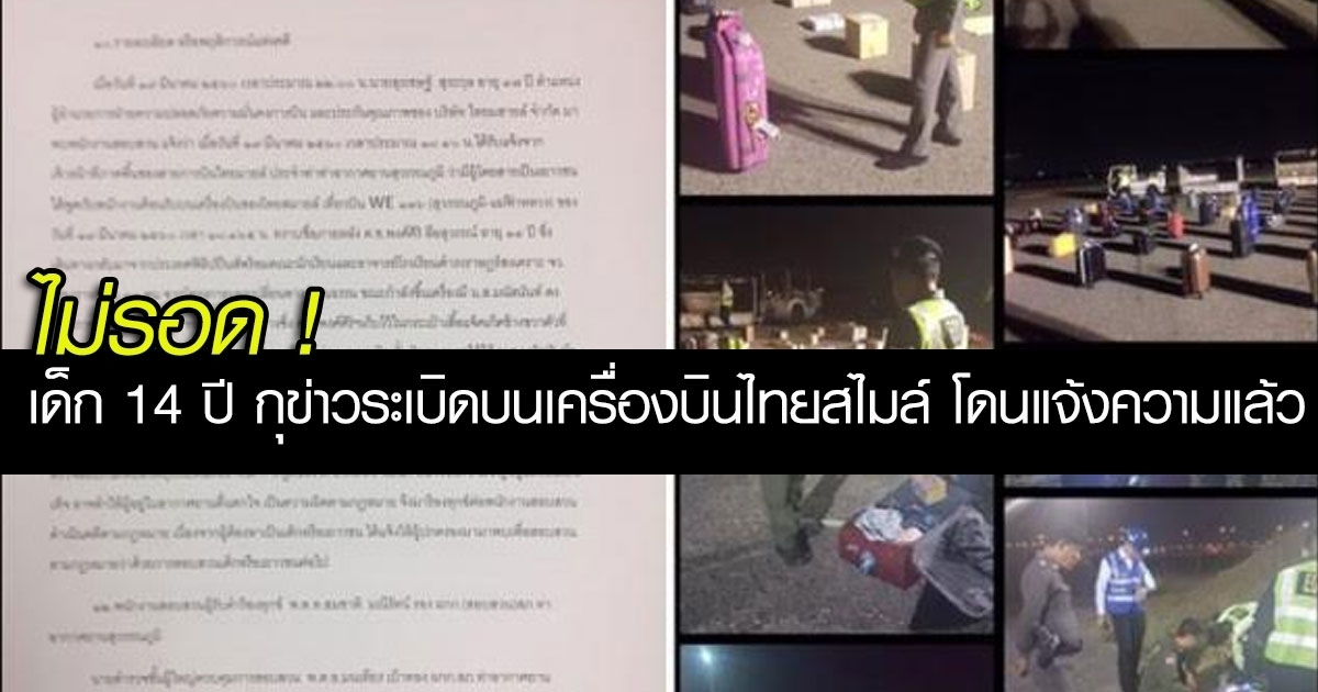 เผยแล้ว ต้นตอปล่อยข่าวมีระเบิดในกระเป๋า ทำสายการบินไทยสไมล์ ต้องระงับการบินฉุกเฉิน เป็นเด็กวัยแค่ 14 ปี ล่าสุดโดนบริษัทเข้าแจ้งความเอาผิดแล้ว