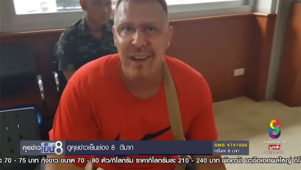 นักท่องเที่ยวชาวเดนมาร์ก ระบุว่า ขณะที่จอดรถจักรยานยนต์เพื่อทำธุรกรรมที่ธนาคาร ก็ถูกนายอาทิตย์วิ่งเข้ามาต่อยใบหน้าทันที โชคดีมีชาวบ้านมาช่วยไว้