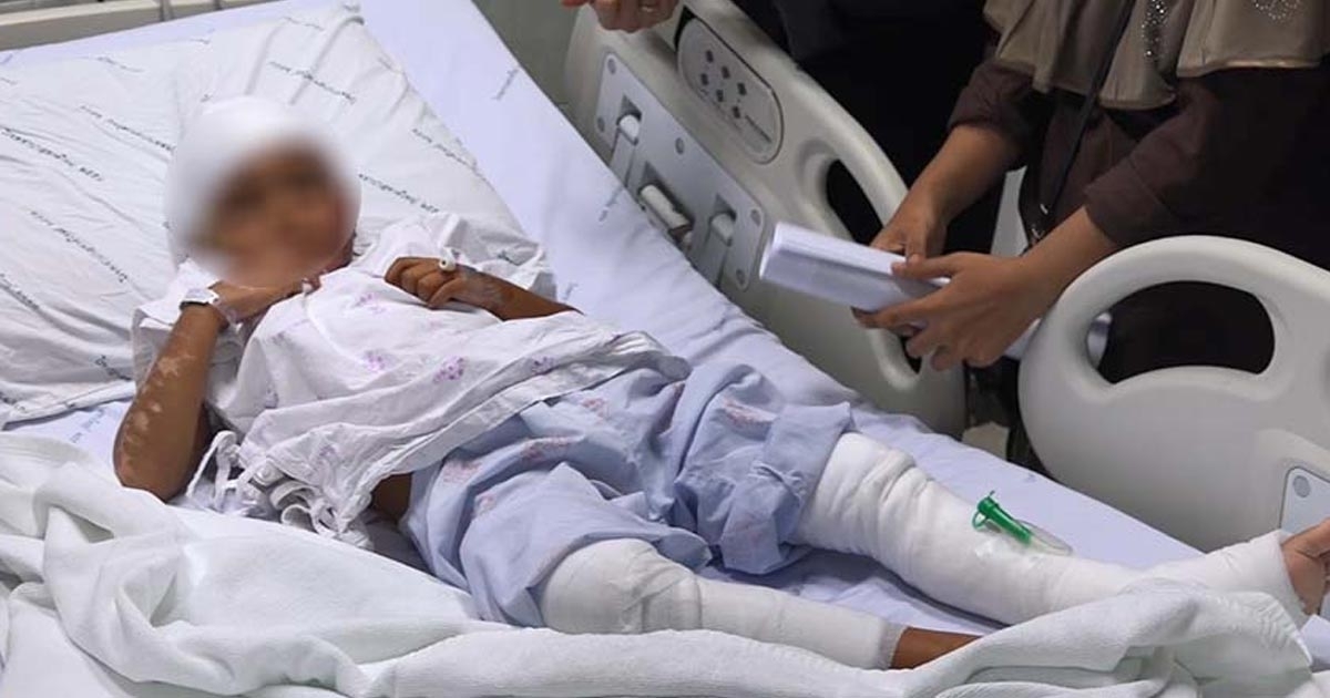 ด้านนางกอรีเยาะ กล่าวอีกว่า การที่ลูกสาวคนนี้บาดเจ็บ ทำให้ครอบครัวเดือดร้อน เพราะไม่ได้ไปขายของ ต้องดูแลลูกทุกวัน อาการน่าเป็นห่วง ต้องอยู่ห้องปลอดเชื้อนานกว่า 1 เดือน ซึ่งทางแพทย์ก็ได้ตัดชิ้นเนื้อไปแปะบริเวณใบหน้าที่เป็นแผลลึก ไม่กล้าเดินเพราะแผลยังไม่หายดี
