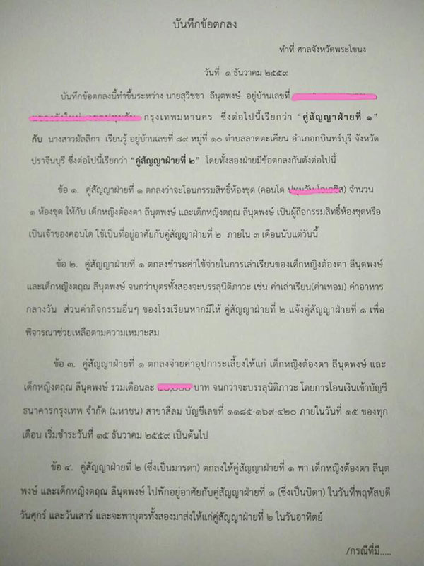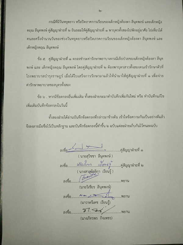 คุณวิเชียร ยังบอกอีกว่า ระหว่างปอแก้วกับลูกชายของตน ได้มีการทำสัญญาตกลงเรื่องการดูแลลูกตั้งแต่วันที่ 1 ธันวาคม 2559 โดยให้ลูก 2 คน อยู่กับพ่อวันพฤหัสบดี-อาทิตย์ และเย็นวันอาทิตย์ แม่สามารถมารับลูกไปได้จนถึงวันพุธ อย่างไรก็ตาม ครอบครัวของตนนั้น รับมาเฉพาะลูกคนโต อายุ 4 ขวบ ส่วนคนเล็กให้อยู่กับปอแก้วตลอดเลย ไม่เคยเรียกร้องอะไร แล้วก็ไม่มีโอกาสได้เจอคนเล็กเลย