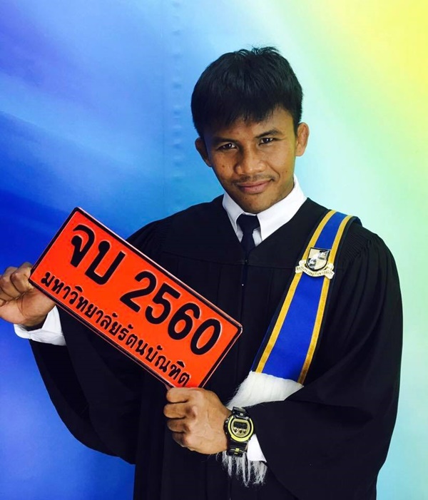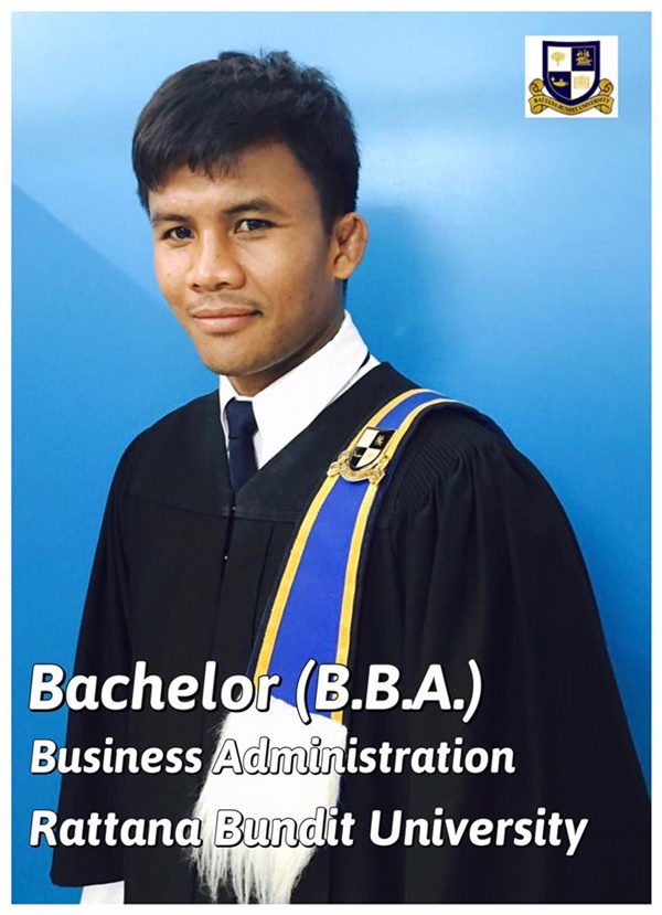 เดิมทีเมื่อปีที่ 2556 บัวขาวได้เข้ารับพระราชทานปริญญาวิทยาศาสตรมหาบัณฑิตกิตติมศักดิ์ (ปริญญาโท) สาขาวิทยาศาสตร์การกีฬา มหาวิทยาลัยเกษตรศาสตร์ และในปี 2557 เข้ารับปริญญาปรัชญาดุษฎีบัณฑิตกิตติมศักดิ์ (ปริญญาเอก) สาขาวิชายุทธศาสตร์ การพัฒนาภูมิภาค (กลุ่มการศึกษาและจัดการภูมิปัญญา) มหาวิทยาลัยราชภัฏสุรินทร์ ก่อนที่เจ้าตัวจะศึกษาเล่าเรียนอย่างตั้งใจจนจบปริญญาตรีสาขา บริหารธุรกิจบัณฑิต จากมหาวิทยาลัยรัตนบัณฑิต ดังกล่าวในปี 2560 ทำให้ บัวขาว มีวุฒิปริญญาทั้ง ตรี-โท-เอก ครบถ้วนแล้วอีกด้วย ทั้งนี้ หลังโพสต์ดังกล่าวถูกเผยแพร่ออกไป ก็มีแฟน ๆ เข้ามาแสดงความชื่นชมมากมาย โดยปลื้มใจที่ บัวขาว ไม่ทิ้งการเรียนการศึกษา แม้ปัจจุบันจะประสบความสำเร็จอย่างมากในเส้นทางอาชีพนักมวยแล้วก็ตาม ซึ่งถือเป็นแบบอย่างที่ดีแก่เยาวชนเป็นอย่างยิ่ง