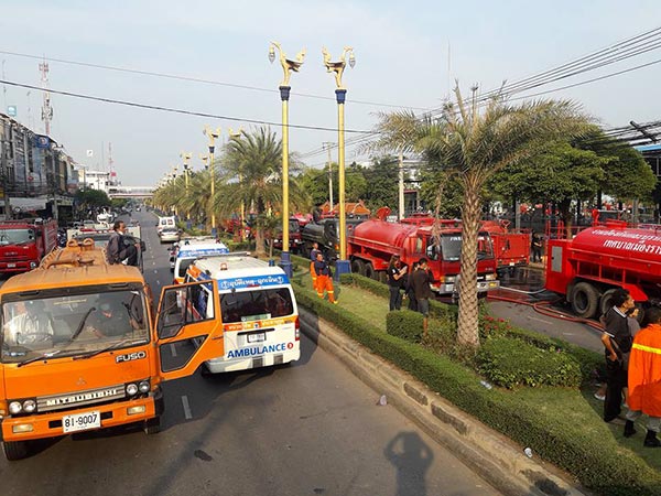 ทั้งนี้บริเวณโดยรอบเต็มไปด้วยควันไฟพวยพุ่งเห็นได้จากระยะไกล สภาพจราจรถนนศรีสุริยวงศ์มุ่งหน้าตลาดศรีเมืองติดขัด ขอให้หลีกเลี่ยงเส้นทางชั่วคราว ส่วนสาเหตุและมูลค่าความเสียหายรอเจ้าหน้าที่ที่เกี่ยวข้องตรวจสอบ