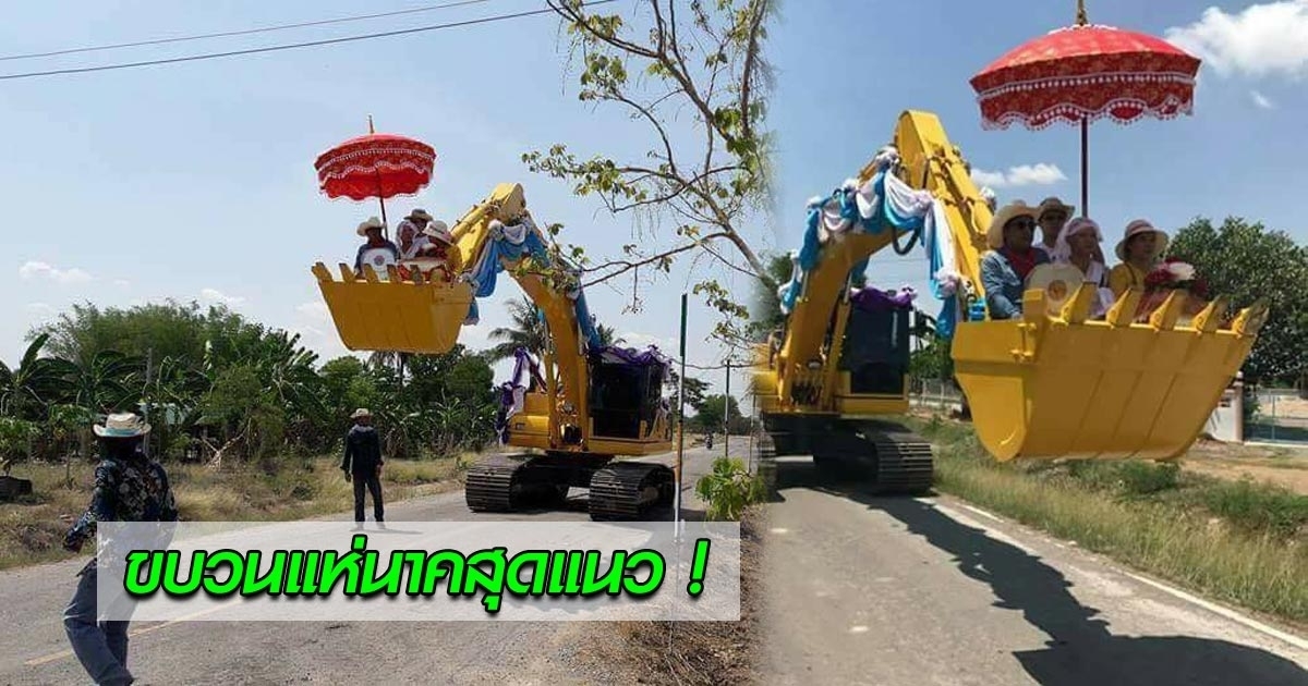 ต้องยกนิ้วให้กับไอเดียที่ไม่ซ้ำใครจริง ๆ อีกนัยหนึ่งดูเหมือนจะเป็นการประชดประชันเล็ก ๆ กับนโยบายห้ามนั่งท้ายรถกระบะของ คสช. จึงเปลี่ยนจากการแห่ด้วยรถกระบะมาเป็นแห่ด้วยรถแบ็คโฮซะเลย !!