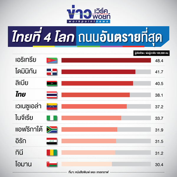 วันที่ 10 เมษายน 2560 มีรายงานว่า หนังสือพิมพ์เทเลกราฟของอังกฤษ ได้จัดอันดับประเทศที่มีความปลอดภัยบนท้องถนนมากที่สุดในโลก เผยประเทศไทยรั้งอันดับ 4 จากท้ายตาราง ซึ่งการจัดอันดับดังกล่าววัดจากจำนวนผู้เสียชีวิตจากอุบัติเหตุบนท้องถนนเทียบต่อจำนวนประชากร 100,000 คน