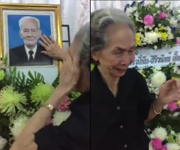 วันที่ 17 เมษายน 2560 โลกออนไลน์แชร์คลิปสุดสะเทือนใจ หลังคุณยายรายหนึ่งมีอาการร้องไห้เสียใจ และเข้าไปลูบที่ภาพถ่ายของสามีในงานศพด้วยความคิดถึง หลังคู่ชีวิตที่อยู่กินกันมาหลายสิบปีจากไปอย่างไม่มีวันกลับ