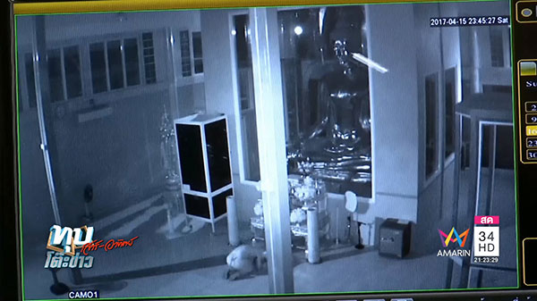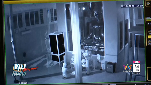 จากนั้นทางวัด ได้เปิดเผยภาพจากกล้องวงจรปิด โดยจะเห็นว่าคนร้ายปีนเข้ามาทางโรงครัว ประมาณเวลา 23.30 น. จากนั้นก็ลากตู้เข้ามาเพื่อหาทางหลบหนี จากนั้นคนร้ายได้ก้มกราบพระ พร้อมยังอธิษฐาน ก่อนจะเข้าไปขโมยอัญมณีใส่กระเป๋าและกระโดดออกไป แล้วยังเอาจีวรคลุมตัวเพื่อหลบหนี ซึ่งภาพจากกล้องจับใบหน้าคนร้ายไว้ได้ค่อนข้างชัดเจน หากใครมีเบาะแสสามารถแจ้งได้ที่ สน.โคกคราม