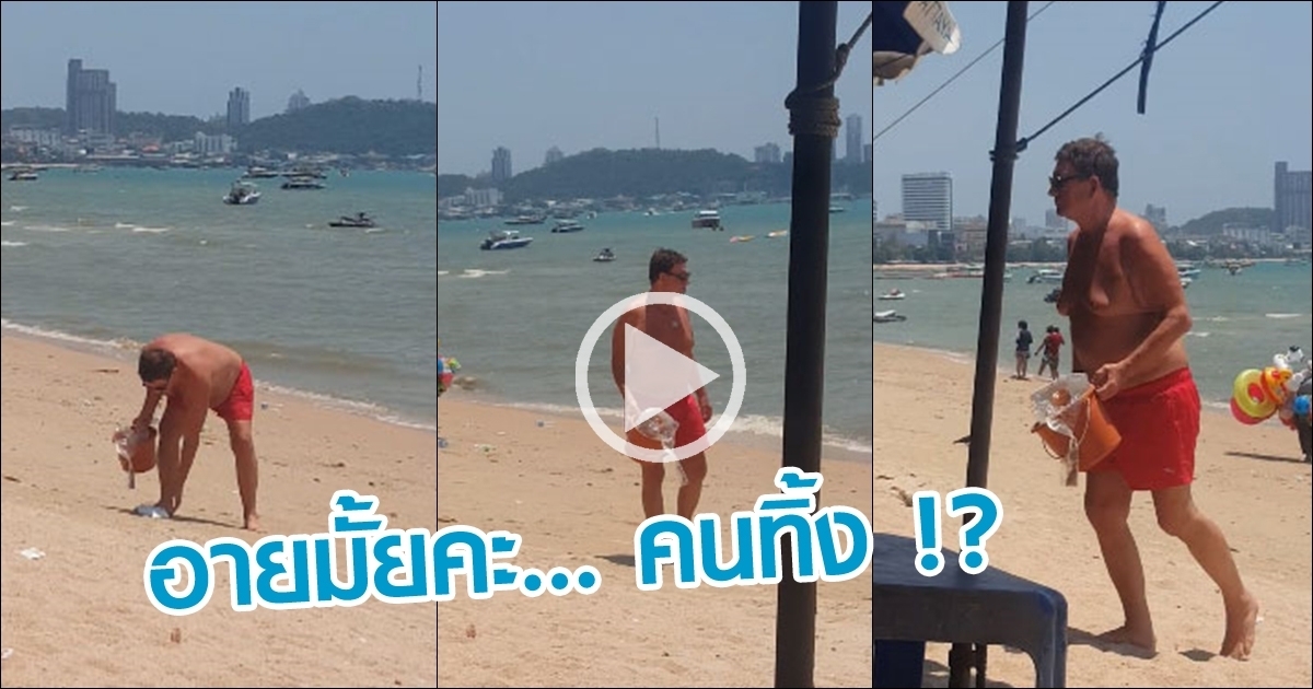 เผยคลิปฝรั่งเดินเก็บขยะริมชายหาดเมืองไทย ชาวเน็ตถาม คนไทยอายไหม