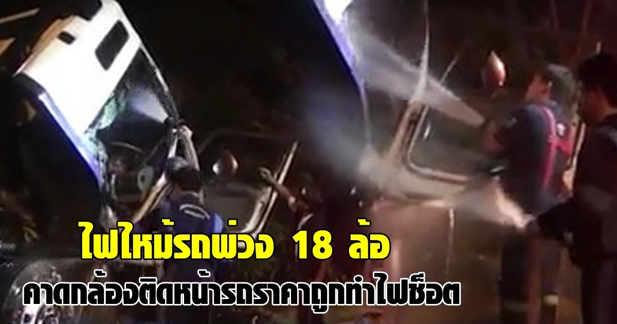 รถพ่วง 18 ล้อไฟไหม้กลางดึก เจ้าของคาดกล้องติดหน้ารถราคาถูกทำไฟช็อต