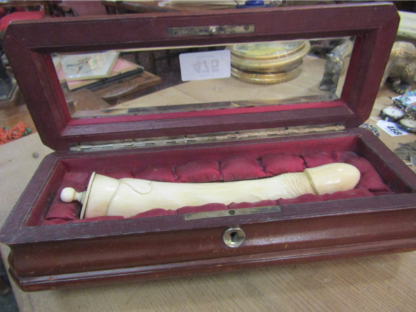 เมื่อวัน 22 เมษายน 2560 สำนักข่าวรัสเซียทูเดย์ รายงานว่า แมทธิวส์ ออคชั่น รูมส์ (Matthews Auction Rooms) บริษัทประมูลศิลปวัตถุและงานศิลป์โบราณในประเทศไอร์แลนด์ ได้ปล่อยแค็ตตาล็อกสำหรับงานประมูลที่กำลังจะจัดขึ้นในเดือนหน้า ซึ่งในบรรดางานศิลป์ทั้งหมดในลิสต์ มีชิ้นหนึ่งที่สร้างเสียงฮือฮาและได้รับความสนใจอย่างสูง สิ่งนั้นคืองานศิลป์หมายเลข 0475 มันคือ "ดิลโด้" สมัยโบราณที่แกะสลักจากงาช้าง