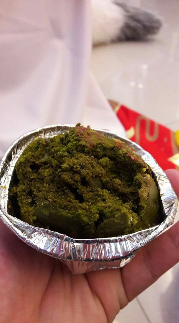 - ทำไมถึงกินเข้าไป สภาพแบบนี้กินลงไปได้ยังไง คือ มันก็มีคนที่ได้ไปแล้วไม่รู้ว่าข้างในไส้เป็นยังไงนะครับ ส่วนใหญ่คิดว่าเป็นแค่คัพเค้กชาเขียว แล้วแทบทุกคนไม่มีใครรู้ว่า เจ้าตัวกล้าใส่พริกไปขนาดนั้นรวมไปถึงนมบูด