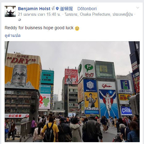 เกี่ยวกับเรื่องนี้ ล่าสุด วันที่ 29 เมษายน 2560 มีการเปิดเผยจากคนไทยที่ไปเที่ยวญี่ปุ่นว่า มีการพบเห็นนายเบนจามิน มานั่งขอทานอยู่บริเวณสะพานคนเดิน ย่านดงโทโบริ แหล่งท่องเที่ยวชื่อดังของเมืองโอซาก้า ซึ่งเจ้าตัวก็ยังมีพฤติกรรมเดิม ๆ คือนั่งรอเงินเรี่ยไรจากคนที่สงสาร ก่อนจะนำเงินไปใช้เที่ยวเตร่อย่างมีความสุข