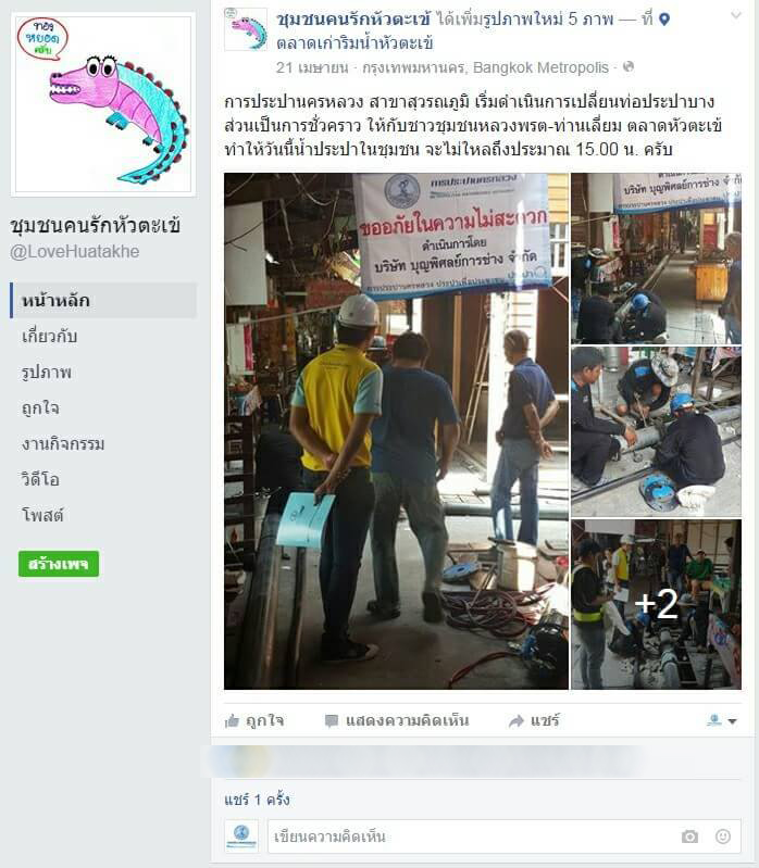 ภาพจาก เรื่องเล่าเช้านี้ บีอีซี-เทโร, เฟซบุ๊ก การประปานครหลวง กปน. (Metropolitan Waterworks Authority - MWA)