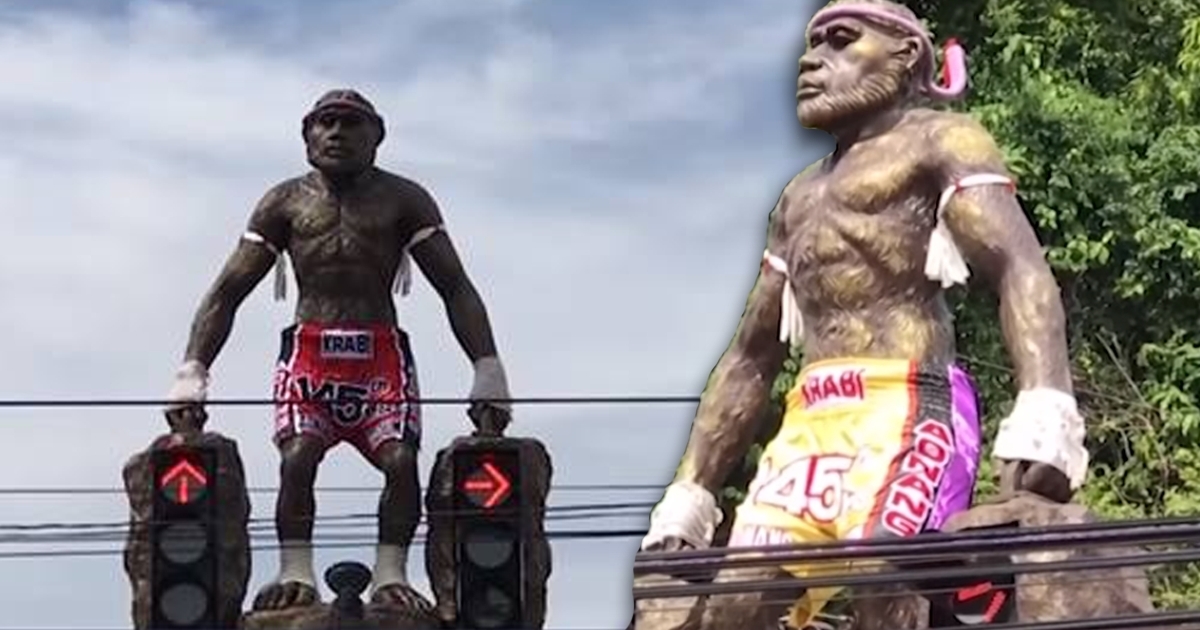 วันที่ 8 พฤษภาคม 2560 โลกออนไลน์ได้มีการแชร์ภาพของรูปปั้นมนุษย์โบราณบริเวณสี่แยกไฟแดง ใจกลางเมือง จ.กระบี่ โดยมีลักษณะสวมกางเกงนักมวย พันมือ และสวมมงคล จนกลายเป็นที่วิพากษ์วิจารณ์กว้างขวางในหมู่ชาว จ.กระบี่ ซึ่งชาวบ้านหวั่นเกิดอาเพศโดยนำไปโยงกับเหตุการณ์ที่มีลมพายุพัดเต็นท์ล้มใส่รถของชาวบ้านไม่กี่วันที่ผ่านมา กลัวว่าอาจเกิดจากอาเพศมนุษย์โบราณ