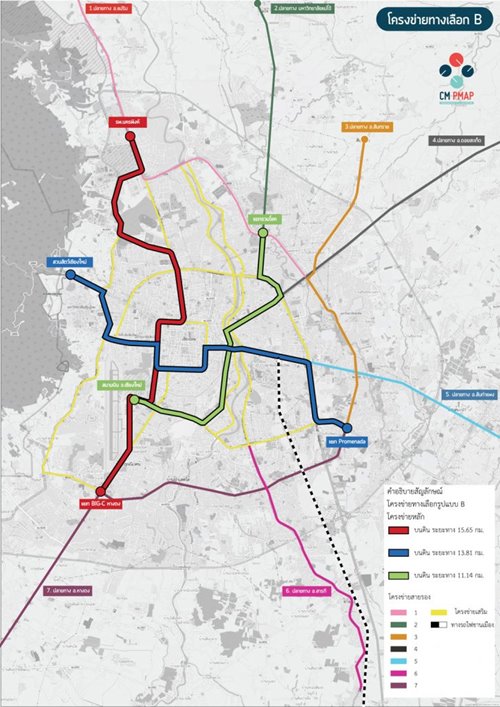 โครงข่ายรูปแบบ A เป็นระบบรถไฟฟ้าใต้ดินและบนดินร่วมกัน มีทางวิ่งเฉพาะ และโครงข่ายรูปแบบ B เป็นระบบรถไฟฟ้าบนดินทั้งหมด ใช้พื้นที่ร่วมบนถนน ซึ่งทั้ง 2 รูปแบบจะมีโครงข่ายรองและโครงข่ายเสริม เพื่อเชื่อมต่อออกไปยังระบบขนส่งสาธารณะหลัก ซึ่งขณะนี้อยู่ระหว่างศึกษาข้อมูลเพิ่มเติมในด้านเส้นทางและการลงทุน ก่อนจะส่งรายงานฉบับสมบูรณ์ในเดือนกรกฎาคม ให้ สนข. เสนอคมนาคมพิจารณาในเดือนกันยายน และเสนอ ครม. ให้อนุมัติต่อไป