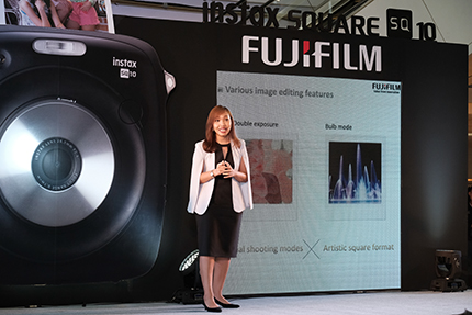 บริษัท ฟูจิฟิล์ม (ประเทศไทย) จำกัด ประกาศความเป็นผู้นำทางเทคโนโลยีกล้อง พร้อมเปิดตัวกล้องโมเดลไฮบริดตัวแรก Instax Square SQ10 รุ่นล่าสุด ที่รวมกล้องถ่ายภาพด่วน Instax และเทคโนโลยีกล้องดิจิตอลอยู่ในตัวเดียวกัน โดยมีความโดดเด่น สามารถถ่ายภาพด่วนในระบบดิจิตอลผ่านช่องมองภาพและได้รับภาพทันที ในรูปแบบฟิล์ม ขนาดสี่เหลี่ยมจัตุรัส (Square) ที่ตอบโจทย์ ไลฟ์สไตล์ของคนรุ่นใหม่ ที่ชื่นชอบแก็ดเจ็ต ที่ให้คุณสามารถสนุกสนานกับการถ่ายภาพได้ทุกจังหวะ และเต็มอารมณ์ กล้อง Instax Square SQ10 มาพร้อมเซ็นเซอร์ CMOS และรูปแบบของฟิล์ม ขนาดสี่เหลี่ยมจัตุรัส (Square) โดยมีจอแสดงภาพขนาด 3 นิ้ว มีปุ่มชัตเตอร์ให้เลือกใช้ทั้ง ซ้ายหรือขวาได้ พร้อมโปรแกรมตกแต่งภาพก่อนพิมพ์ในตัวเครื่อง สะดวกกับผู้ถ่ายภาพ โดยสามารถเลือกภาพและตกแต่งภาพได้ก่อนพิมพ์ ในบอดี้รูปทรง Square สวยลงตัว สีดำคลาสสิก พร้อมกันนี้ ได้เตรียมแผนโฆษณาและประชาสัมพันธ์ เพื่อสร้างการรับรู้ และสร้างภาพลักษณ์ของผลิตภัณฑ์ โดยเชิญ Celebrity ชื่อดังเพื่อถ่ายทอดภาพลักษณ์กับกลุ่มเป้าหมาย เตรียมใช้งบการตลาดกว่า 20 ล้านบาท ตั้งเป้ายอดขายในสิ้นปีมากกว่า 5,000 ตัว
