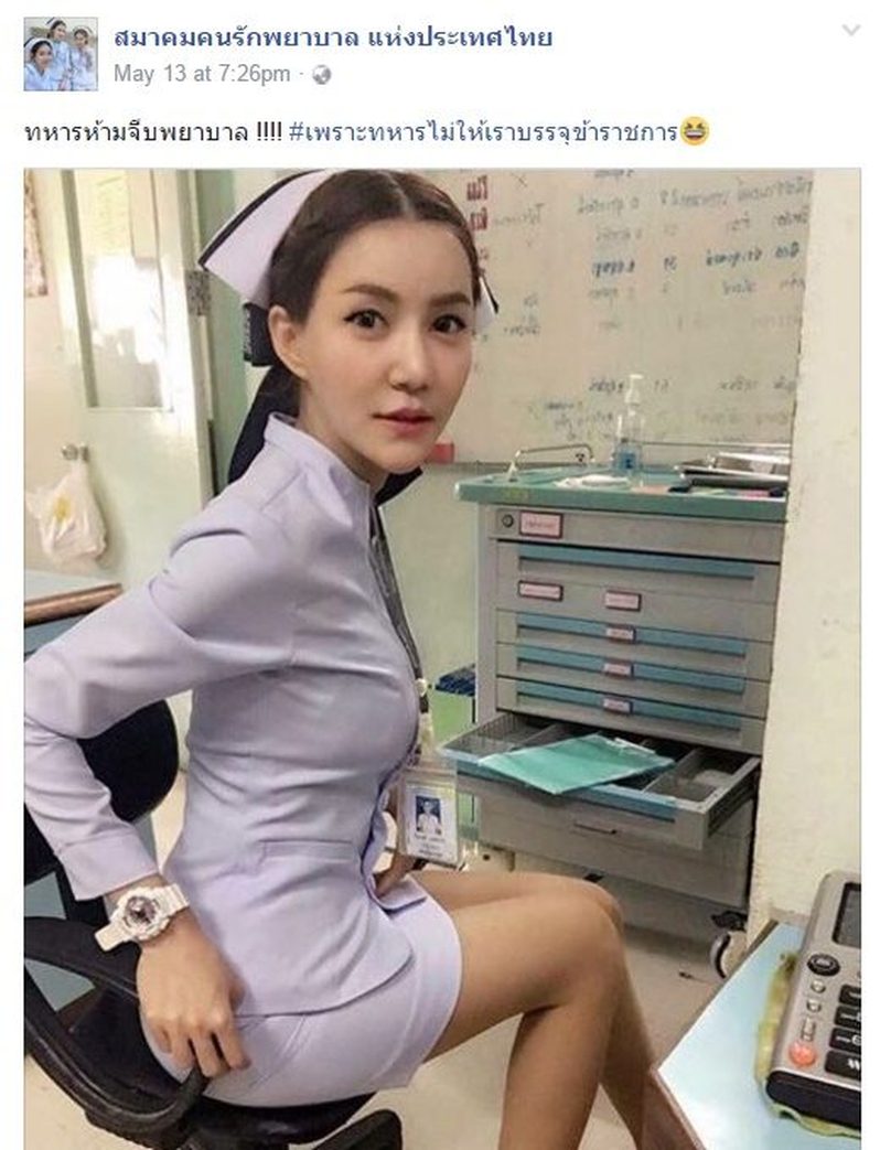 จากกรณีที่มีเพจสมาคมคนรักพยาบาลแห่งประเทศไทย ได้โพสต์ภาพพยาบาลสาวรายหนึ่ง พร้อมข้อความว่า ทหารห้ามจีบพยาบาล เพราะทหารไม่ให้เราบรรจุข้าราชการ ซึ่งทำให้พยาบาลที่อยู่ในภาพ ถูกวิจารณ์เนื่องจากภาพลักษณ์ที่เซ็กซี่