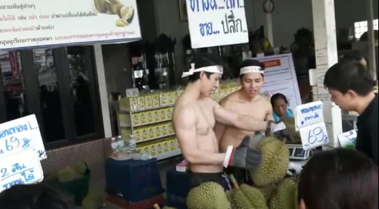 พ่อค้าทุเรียนหล่อ บอกต่อด้วย... แห่แชร์คลิปคนขายทุเรียน งานดี งานละเอียด กล้ามเน้น ๆ บอกเลยลูกค้าแน่นร้าน ขายดิบขายดีกันแบบเทน้ำเทท่า เห็นแล้วอยากวาร์ปไปซื้อเดี๋ยวนี้เลย เมื่อวันที่ 22 พฤษภาคม 2560 ทำเอาโลกออนไลน์ร้อนระอุทะลุปรอท โฟกัสผิดจุด เมื่อได้เห็นคลิปทุเรียนขาวจั๊วะ เอ๊ยยย...พ่อค้าทุเรียน ผิวขาวจั๊วะ โชว์หุ่นล่ำบึ้ก กล้ามใหญ่เว่อร์ หน้าใสแบบโอปป้า ยืนขายทุเรียนอยู่ท่ามกลางลูกค้าที่แห่มาซื้อกันอย่างล้นหลาม ณ โกดังทุเรียน 39 บาท สายเอเชีย สิงห์บุรี เรียกได้ว่าขายดิบขายดีกันแบบเทน้ำเทท่าเลยทีเดียว