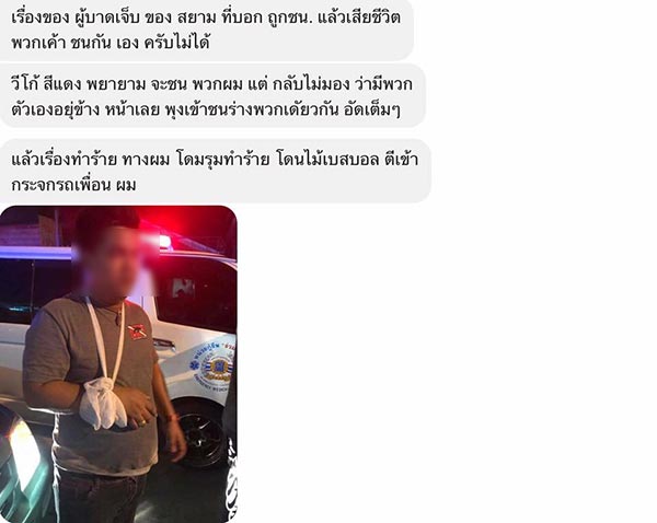 จากเหตุการณ์การปะทะเดือดในครั้งนี้ ทำให้ น้องเท่ง หนึ่งในอาสาสมัครมูลนิธิสยามรวมใจ ถูกรถชนได้รับบาดเจ็บ