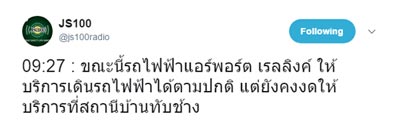 ช่วงเช้าวันนี้ (19 มิถุนายน 2560) มีรายงานเหตุหญิงพลัดตกรางรถไฟฟ้า ที่สถานีรถไฟฟ้าแอร์พอร์ต เรล ลิงก์ บ้านทับช้าง เบื้องต้นอาการบาดเจ็บสาหัส และได้มีการปิดสถานีบ้านทับช้างที่เกิดเหตุไว้ชั่วคราว เพื่อดำเนินการเคลื่อนย้ายและแก้ไขปัญหา
